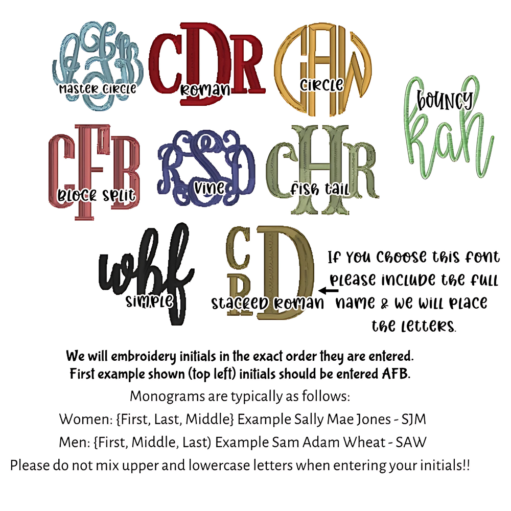 - type in sweatshirt color (2nd pic), stitch color (2nd pic), font style AND initials in the correct order showed in last picture.