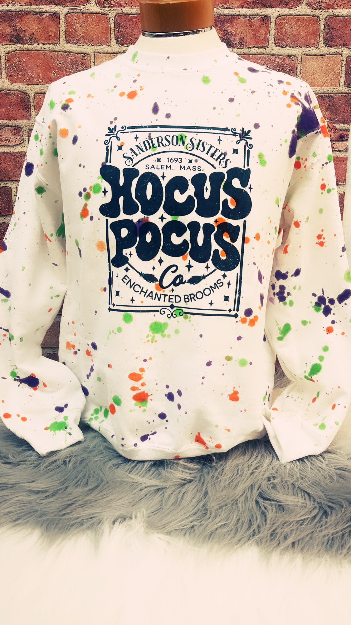 Calling all Sanderson Sisters fans! Get your hands on this one-of-a-kind spooky paint splatter sweatshirt and show off your Halloweentown love. Rock this unique piece of apparel and show the world you're not afraid of a little Hocus Pocus!! 🔮