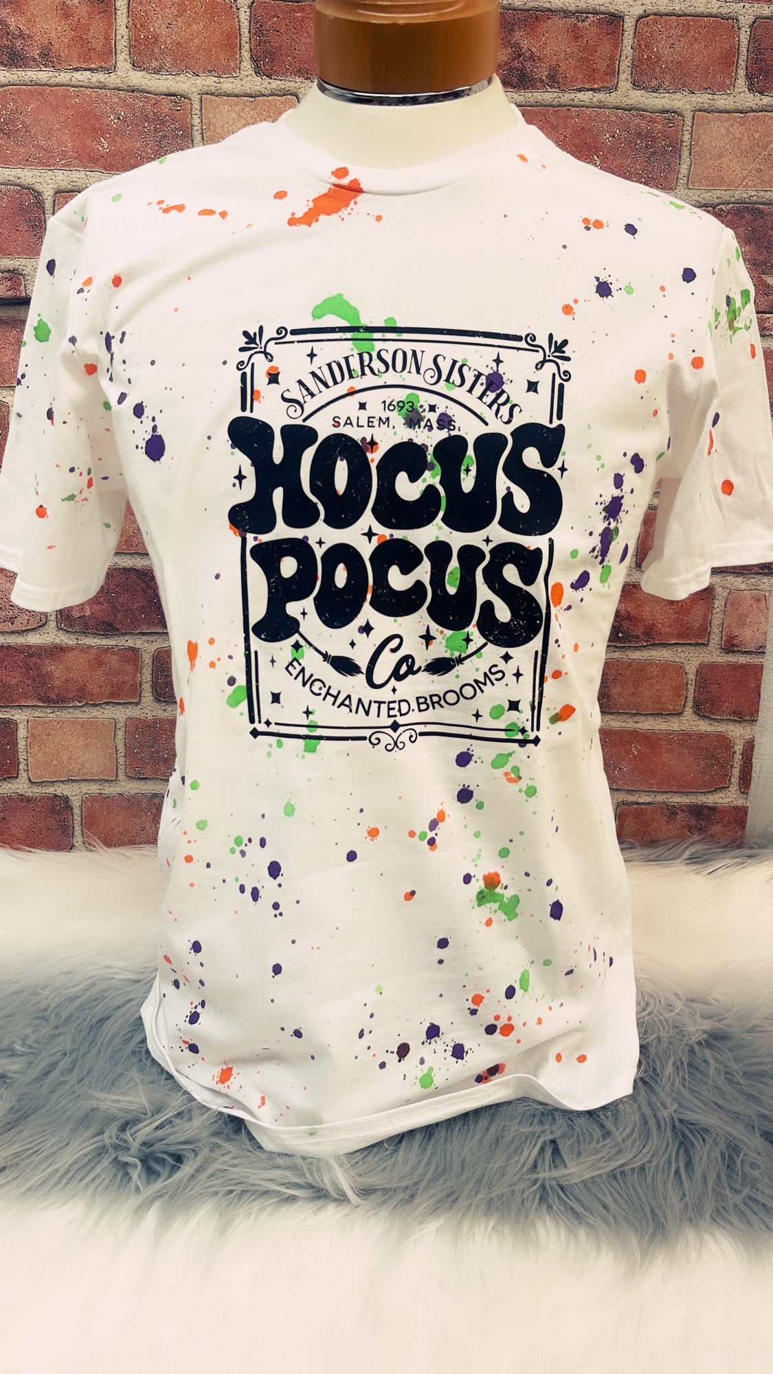 Calling all Sanderson Sisters fans! Get your hands on this one-of-a-kind spooky paint splatter SHORT SLEEVE TSHIRT and show off your Halloweentown love. Rock this unique piece of apparel and show the world you're not afraid of a little Hocus Pocus!! 🔮