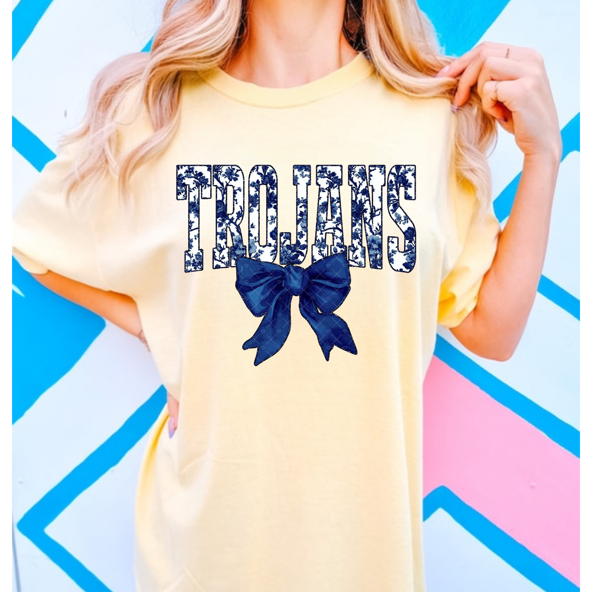 Get ready for school with our playful Trojans Floral Navy Toile Design tee! Available in soft Bella Canvas and cozy Comfort Colors, this shirt combines comfort with your school spirit. Show off your Trojans pride in style while staying comfy all day long. Perfect for students, fans, or anyone who loves a fun, fresh look!